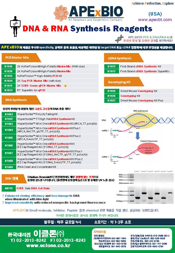 이클론(주)는 APExBIO의 한국공식대리점이며,